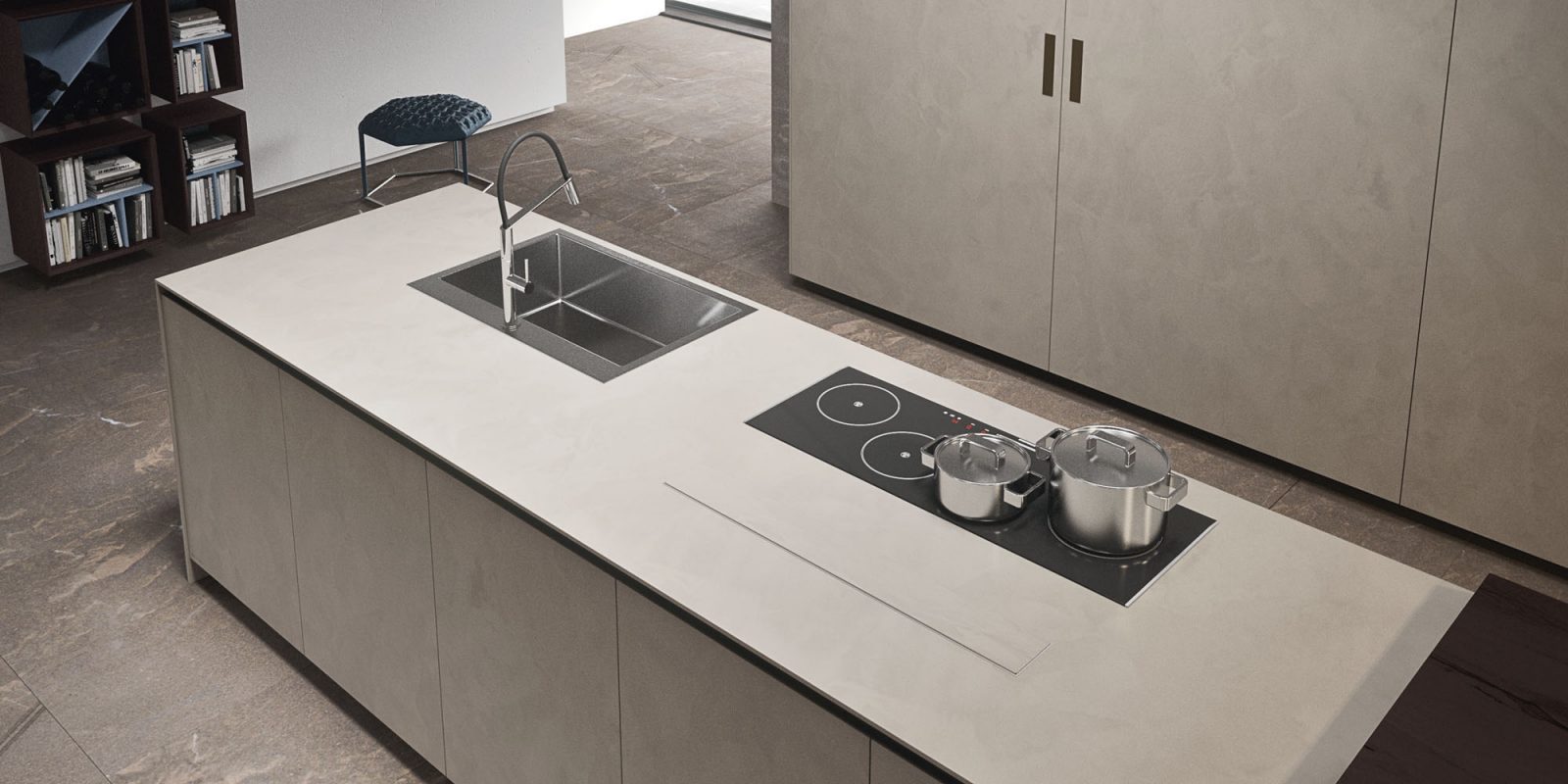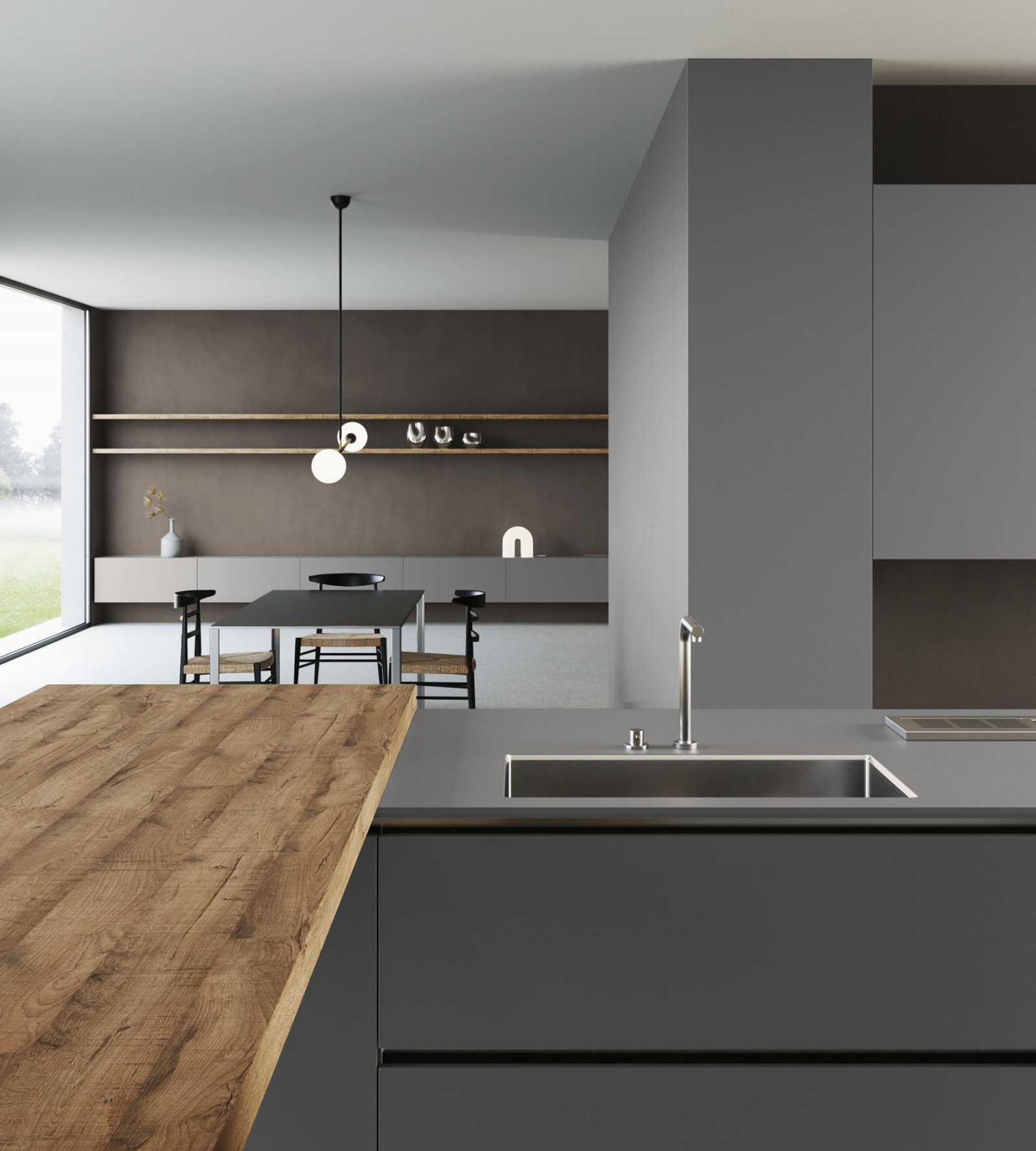 RKC 2.1 is a kitchen design offering multiple solutions, including linear elements that form the basis of the room and determine its function and space in a fine balance between aesthetics and practicality.